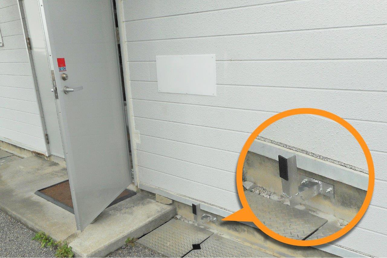破損した壁面の補修と戸当たりの設置