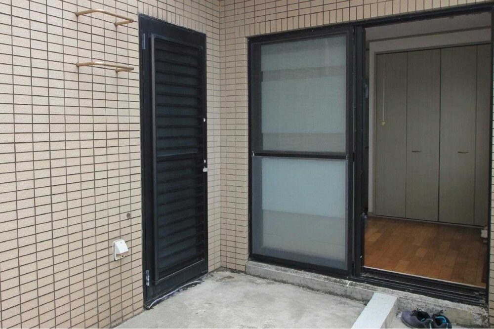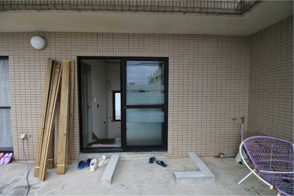 大きい方のベランダは、掃き出し窓を撤去して玄関を増築しました(玄関ドア:LIXIL プレナスX C12型)