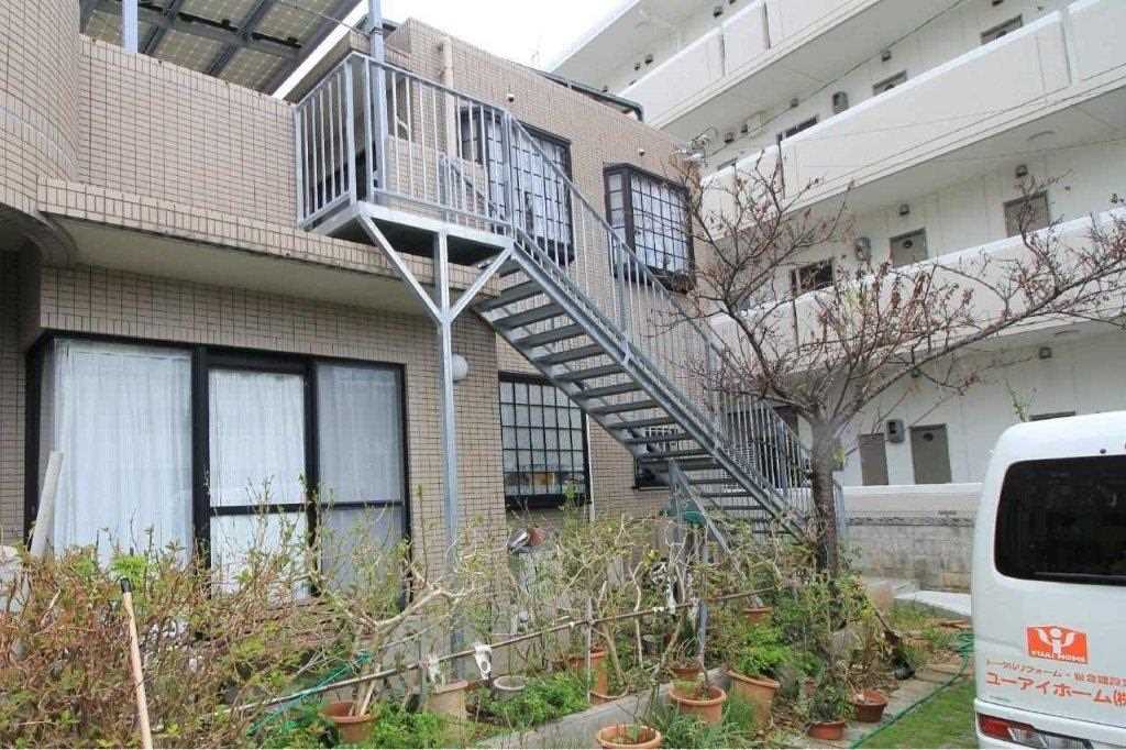 1階の花壇から2階のベランダへ、ストレートの外階段