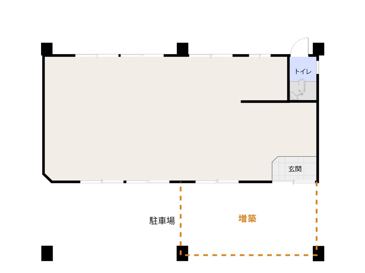 BeforeとAfterの間取り図です。 増築部分に水まわりを配置しました。