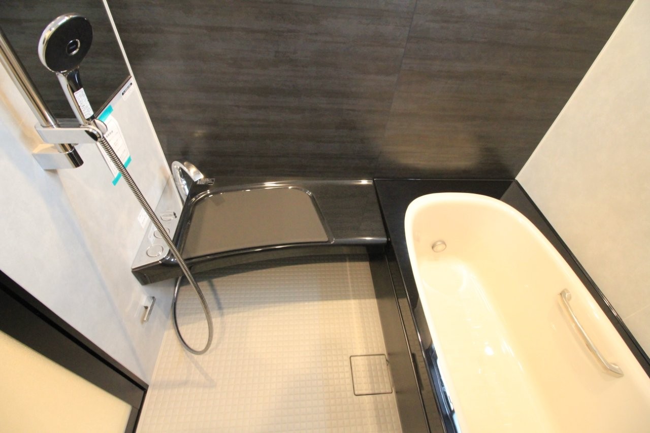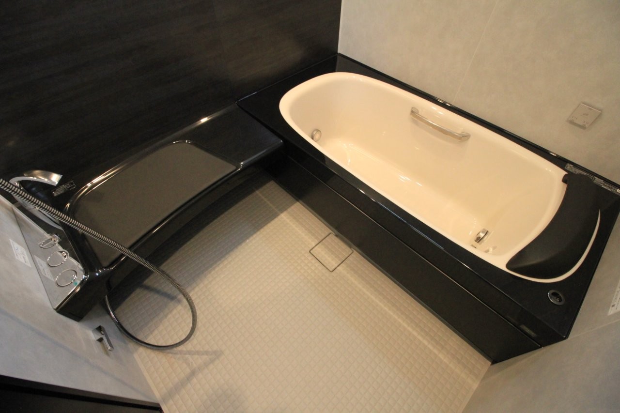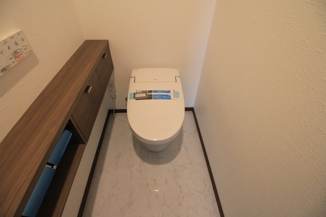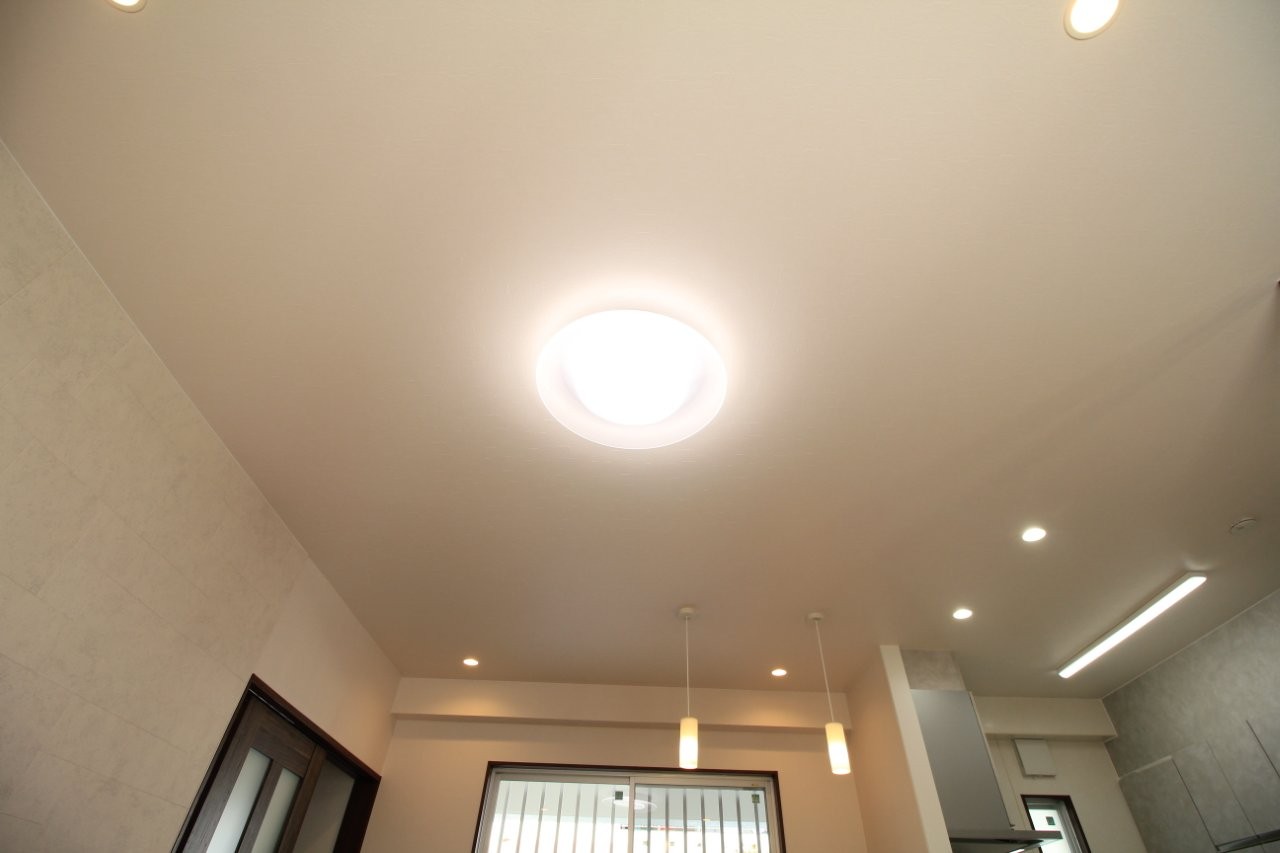 貸店舗にしていた1階部分をスケルトンまで解体し、二世帯住宅にリノベーションしました。 駐車場の一部には、浴室やトイレ、洋室を増築しました。 水まわりの設備機器はLIXIL製品で統一し、キッチンや脱衣所の棚は造作しました。