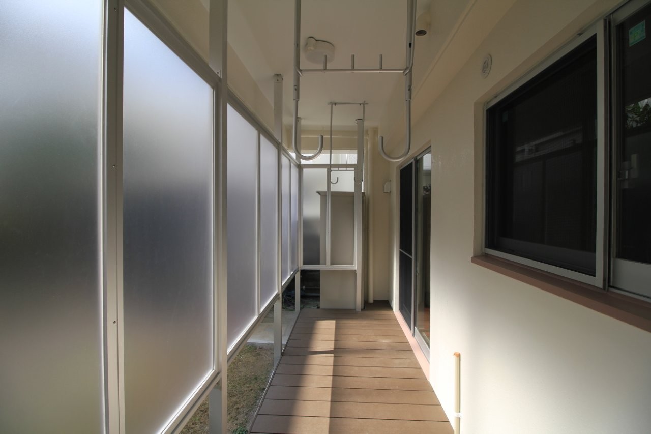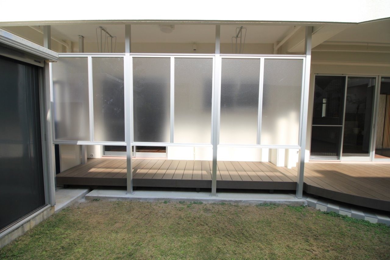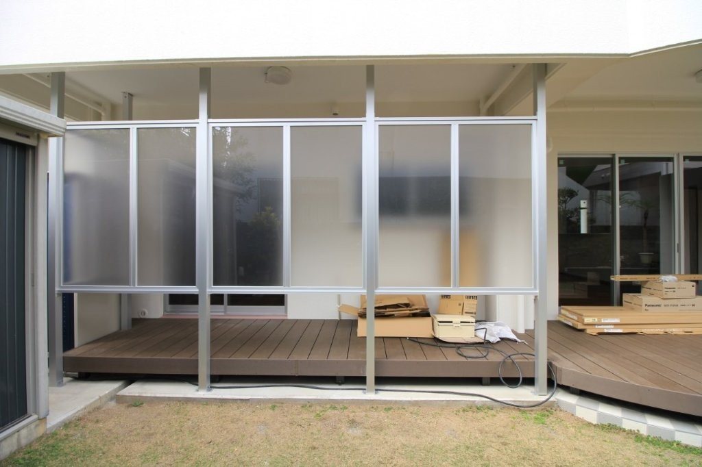 フェンスはすりガラス調で、視線を遮りながらも柔らかい光を取り込みます。