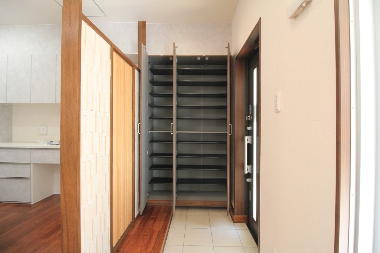 新たに設けた玄関には大容量のシューズクローゼットを設置しました。