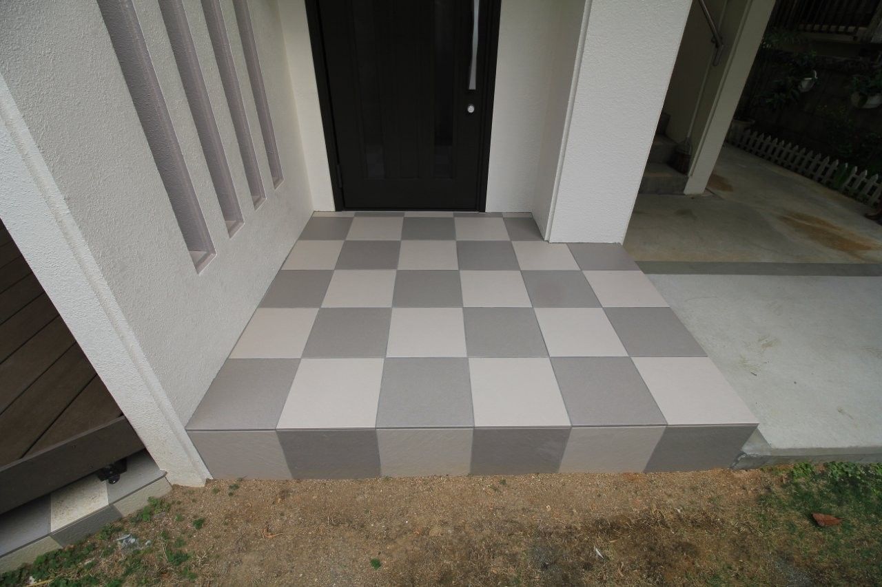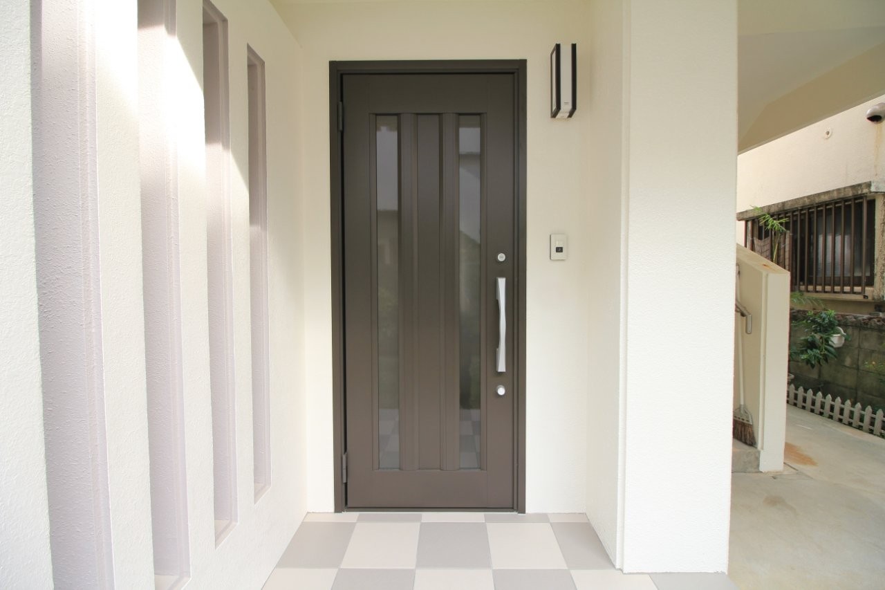 LIXILの玄関ドアを設置し、玄関ポーチも造作しました。