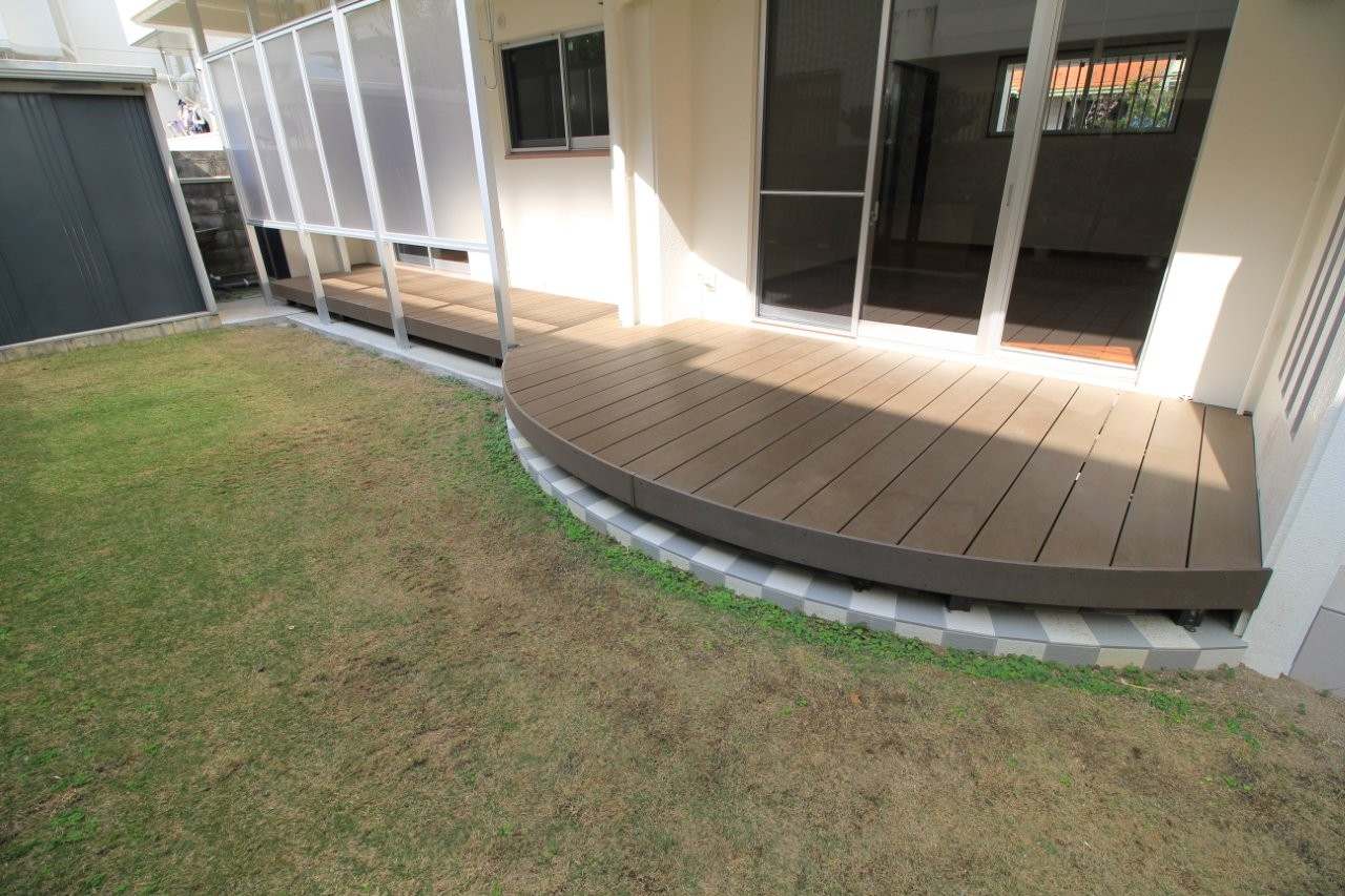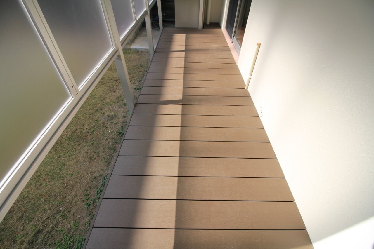 犬走りにLIXILのウッドデッキ(樹ら楽ステージ)を設置しました。