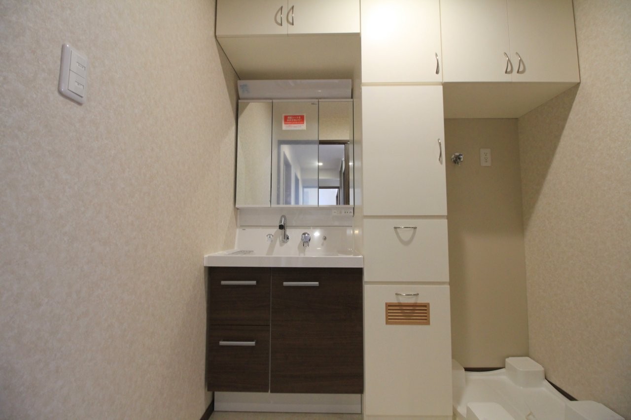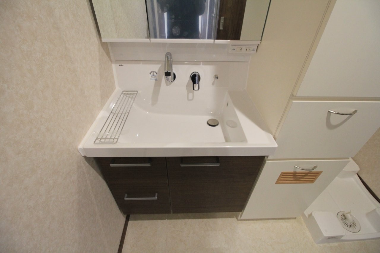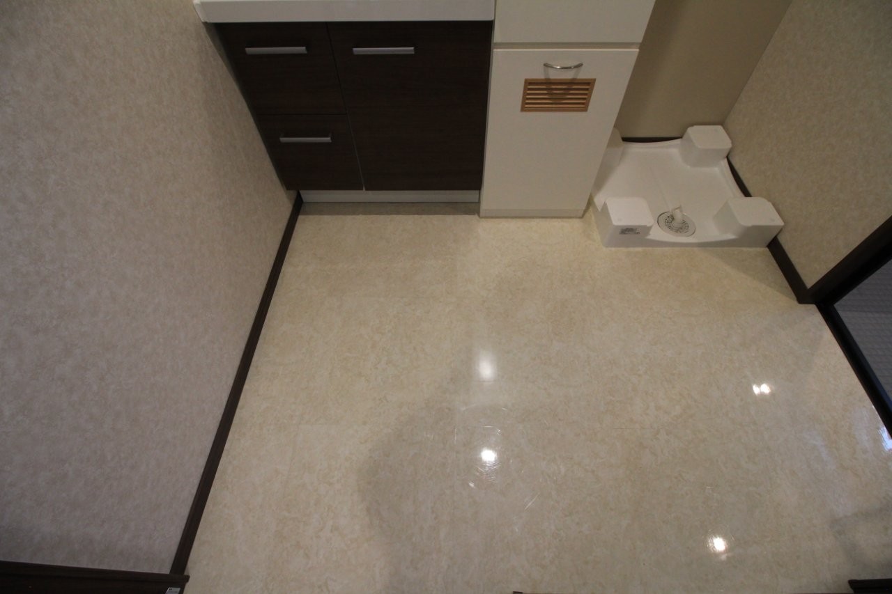 元の玄関があった場所を洗面室にリフォームしました。 洗面化粧台は(LIXILのピアラ)です。
