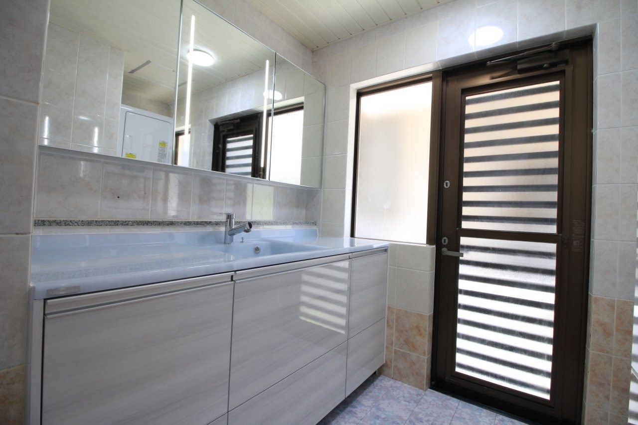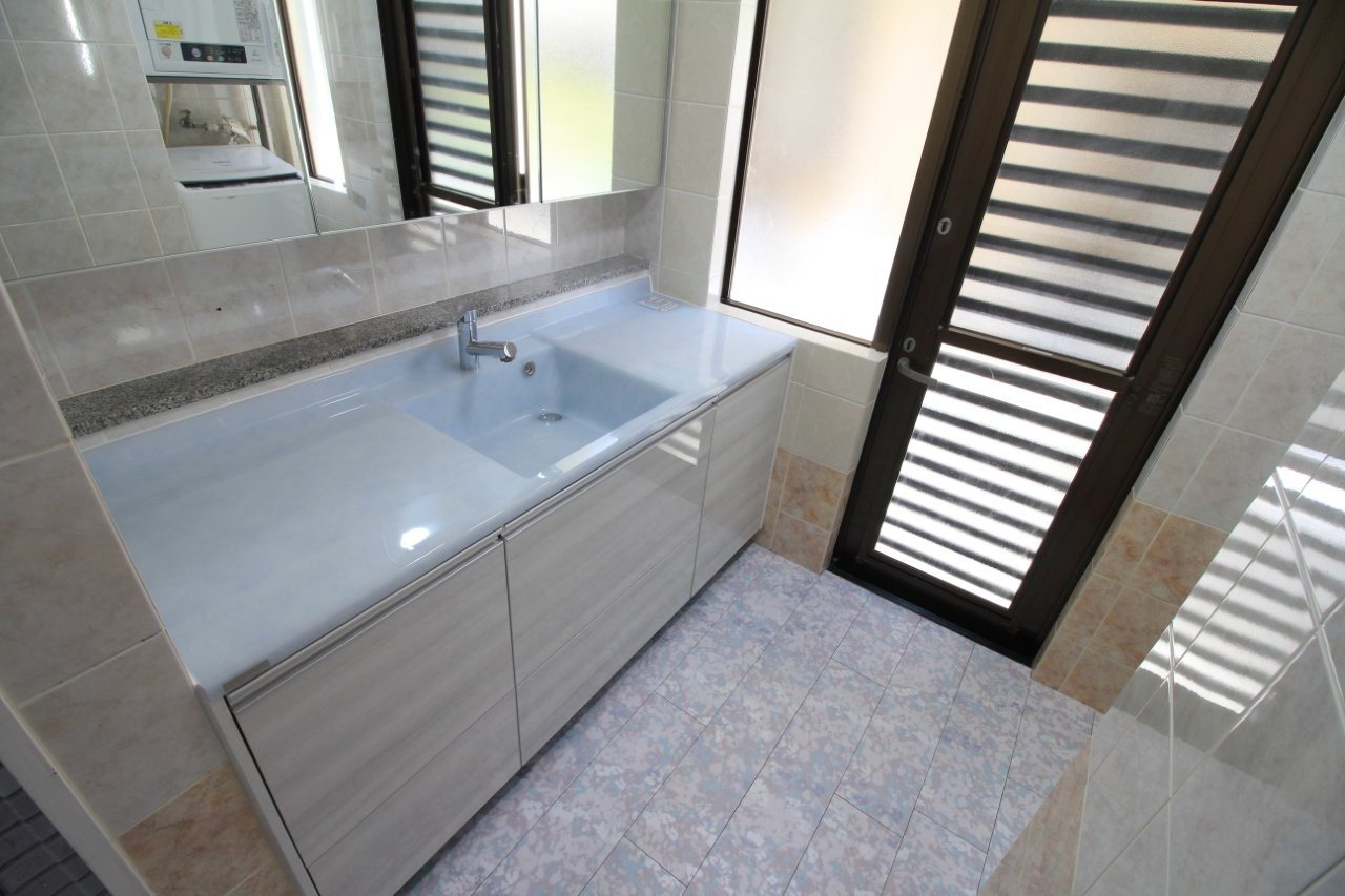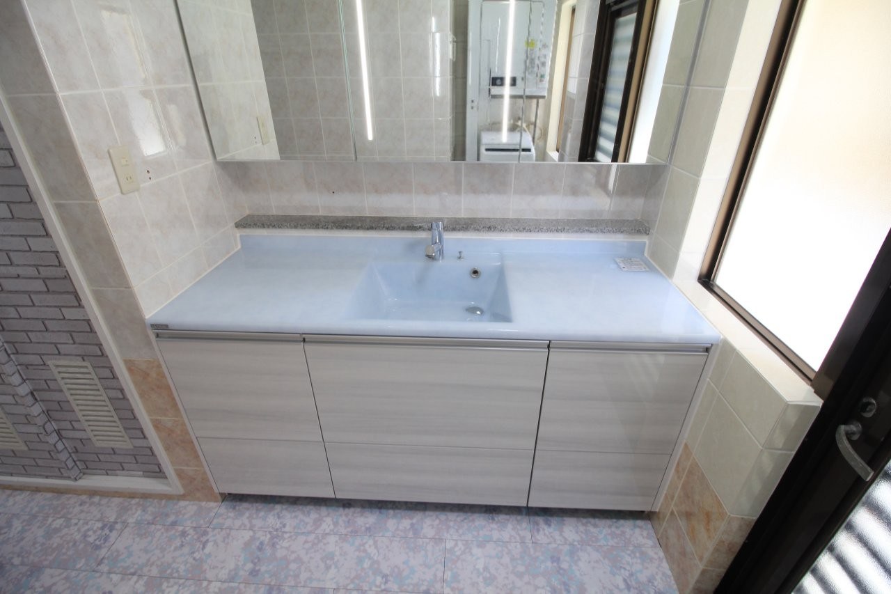 洗面室は洗面化粧台を取替えて、床や窓も取替えました。