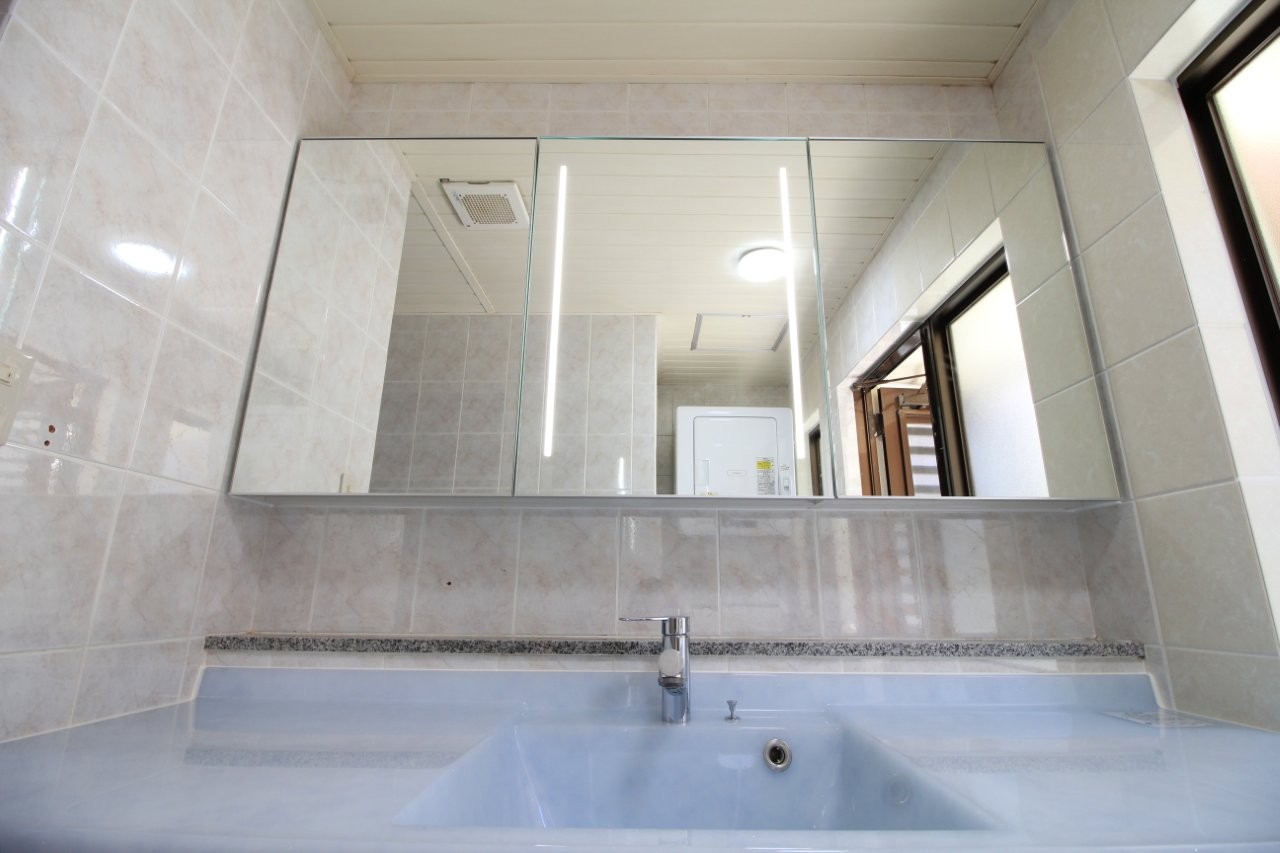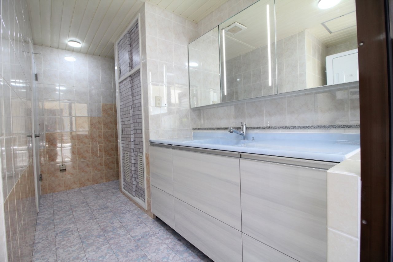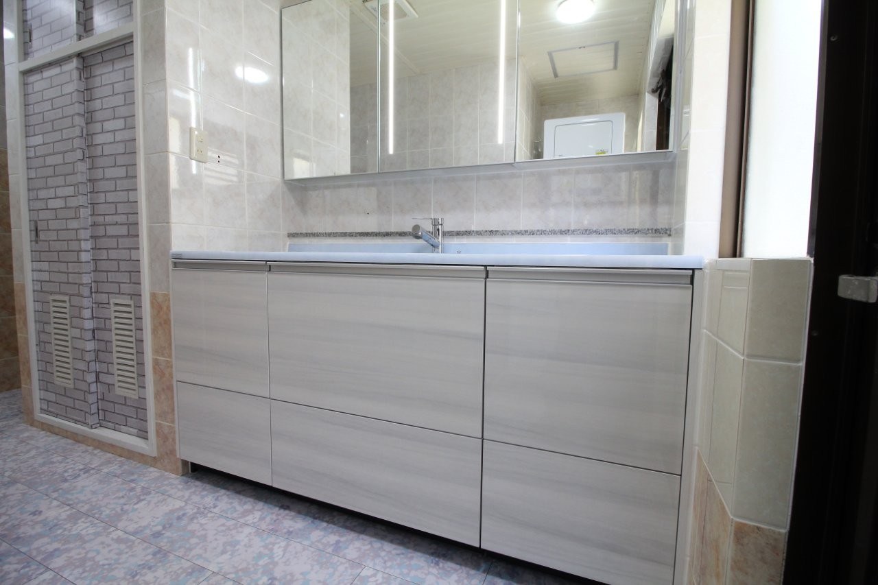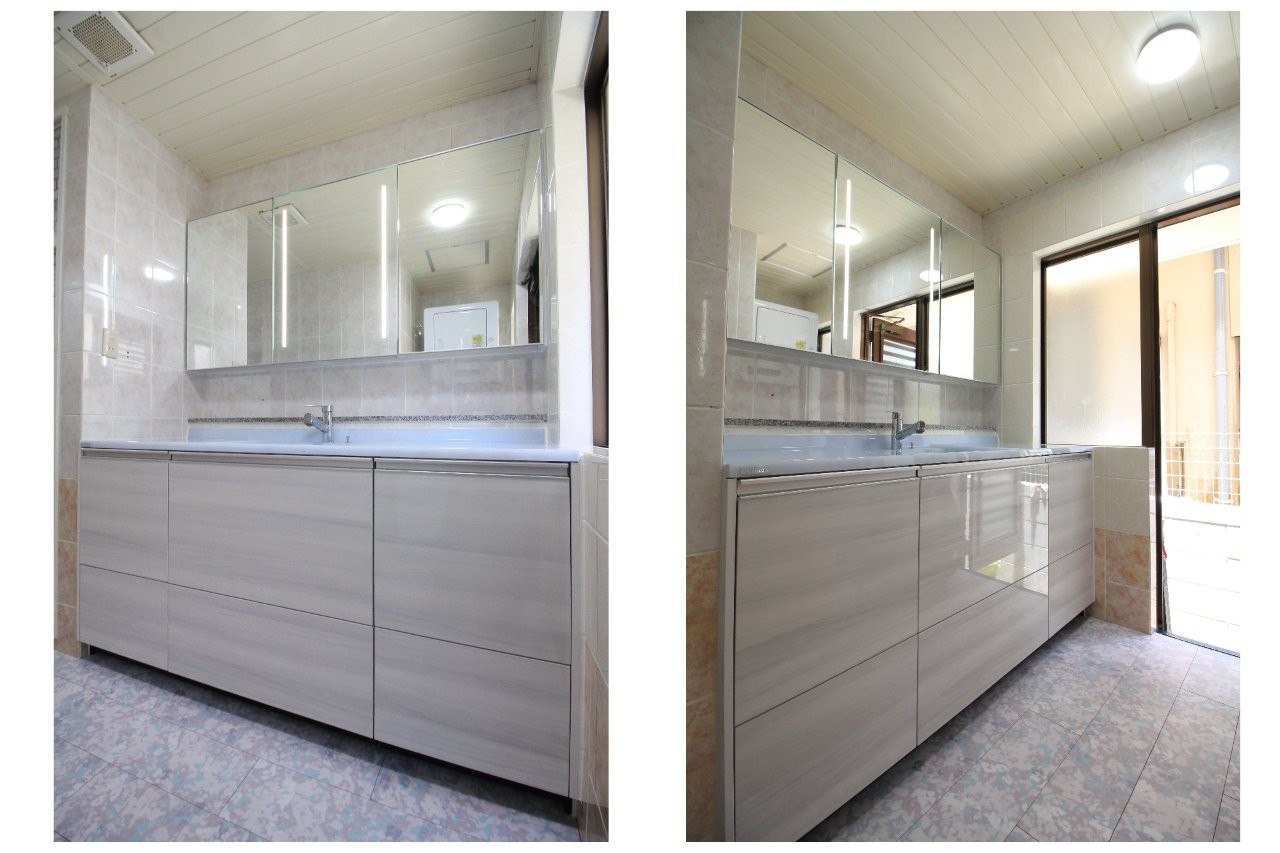 洗面室は洗面化粧台を取替えて、床や窓も取替えました。