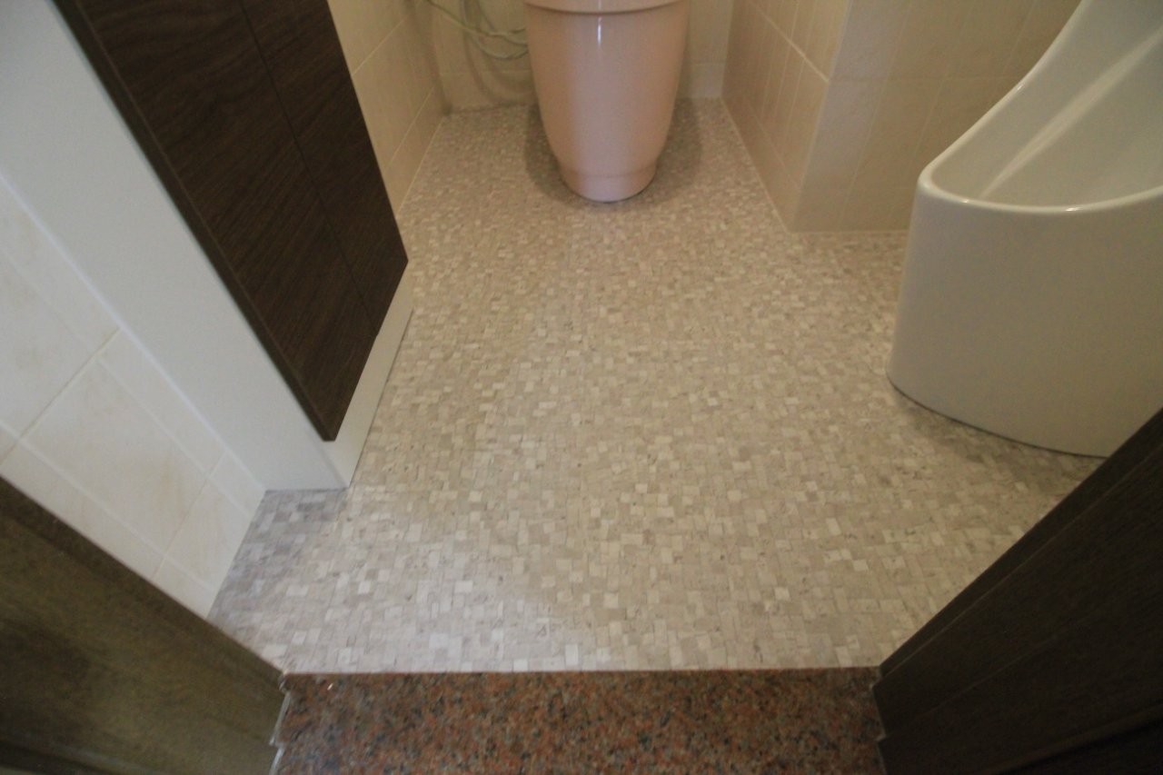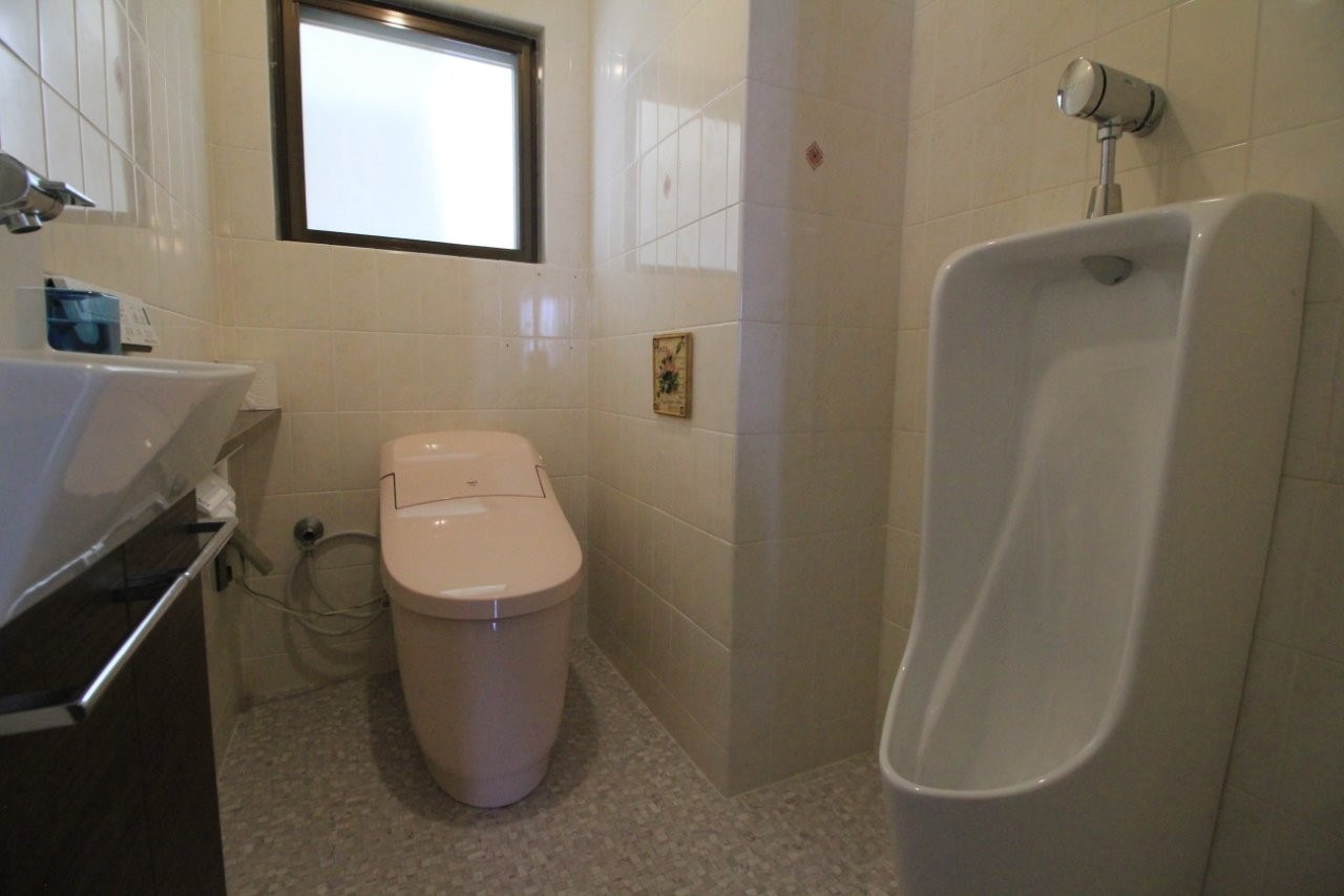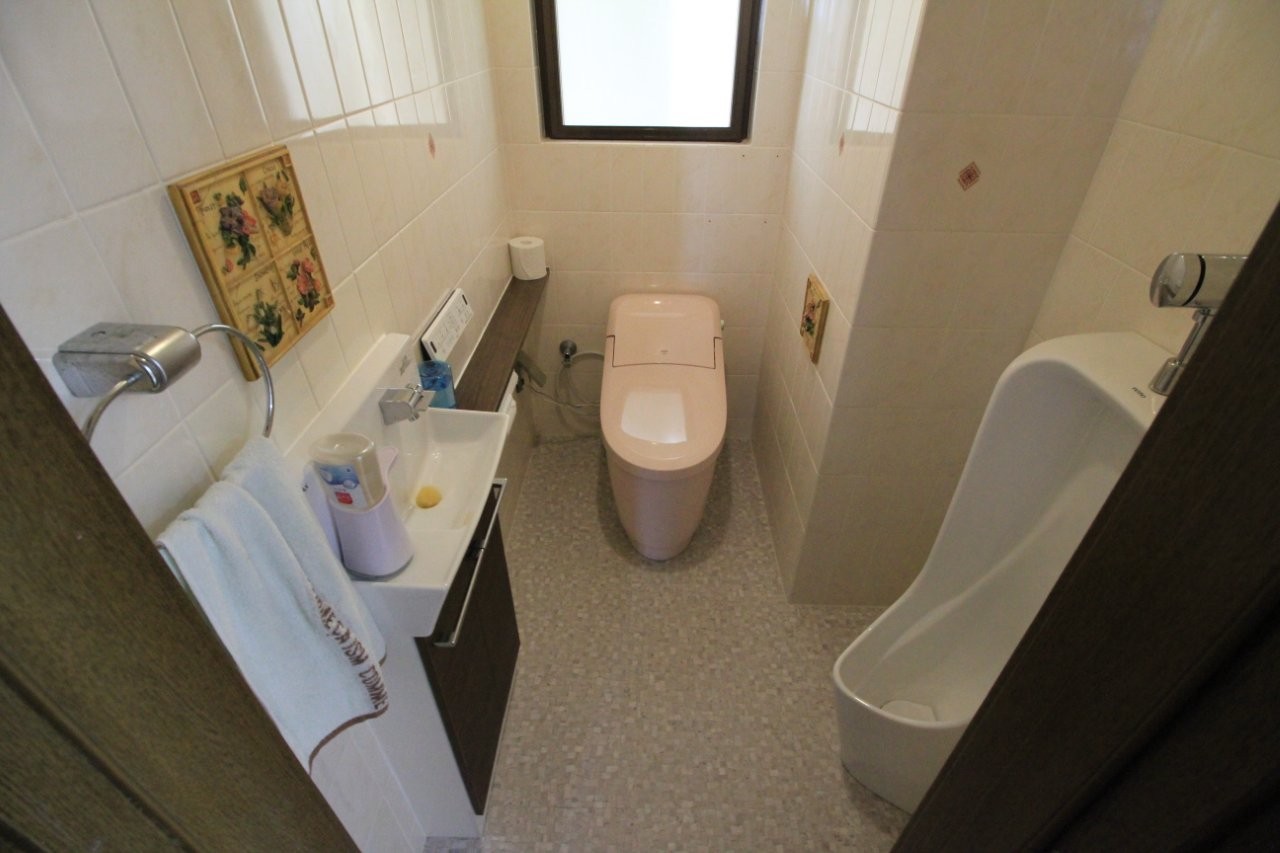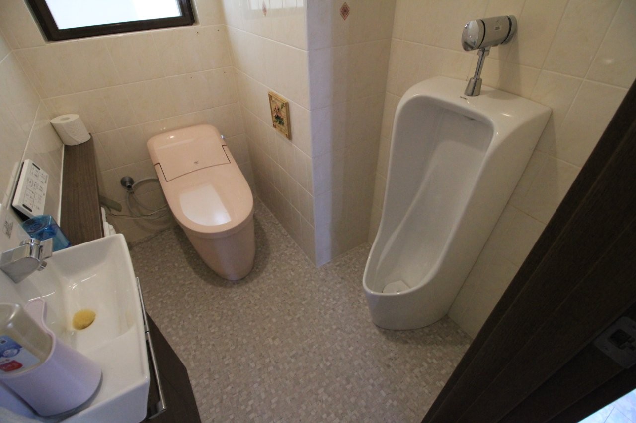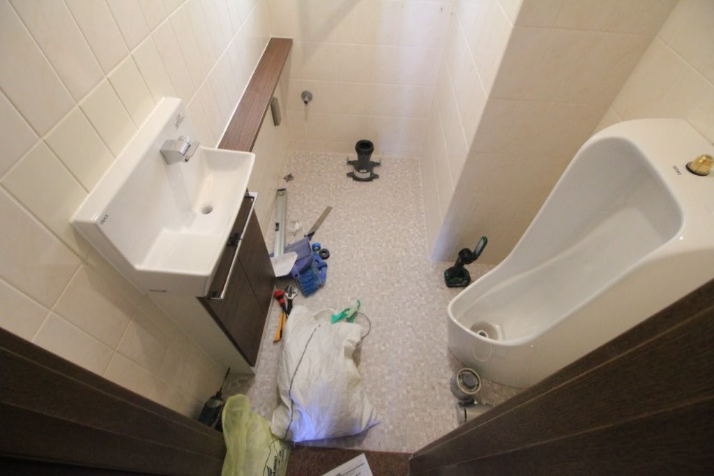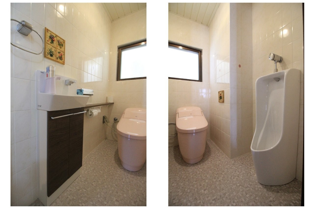 トイレは床を嵩上げして段差を解消し、小便器も取り替えました。