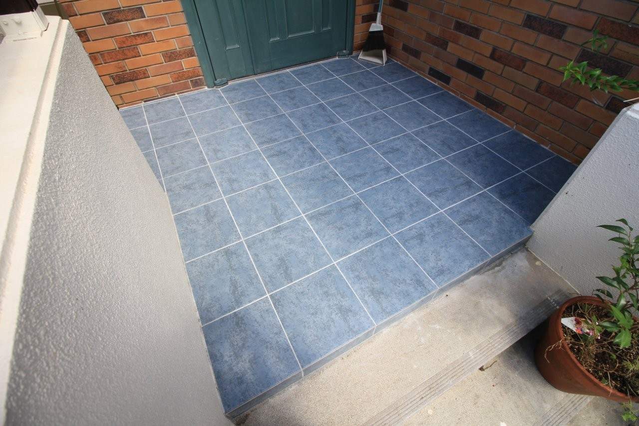 老朽化した玄関ポーチのタイルを貼り替えました。(アイコットリョーワのマディソン MD-300S/06)