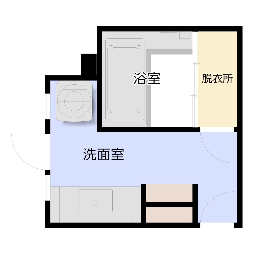 BeforeとAfterの間取り図です。約3分の1のスペースを脱衣所にリフォームしました。