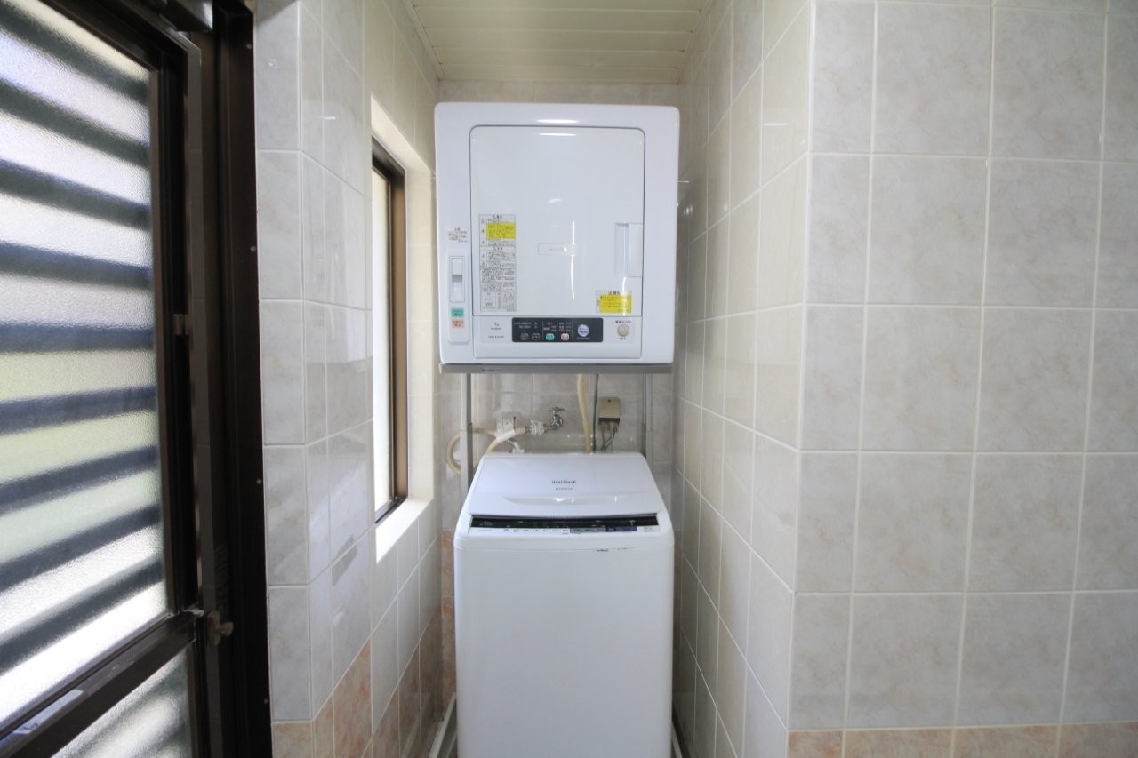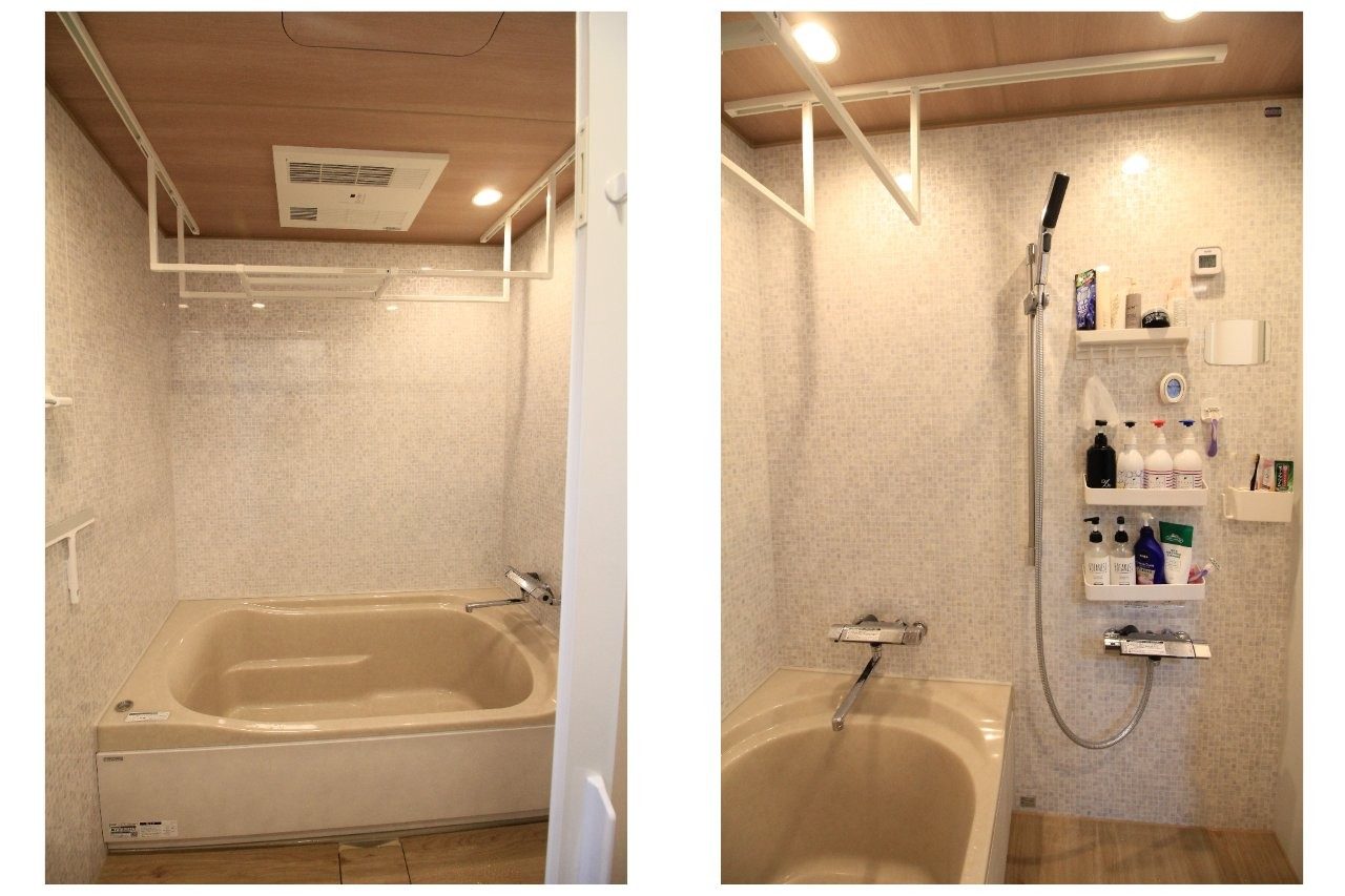 広い浴室をシステムバスと脱衣所にリフォームし、浴室乾燥機や物干しレールも取付けました。