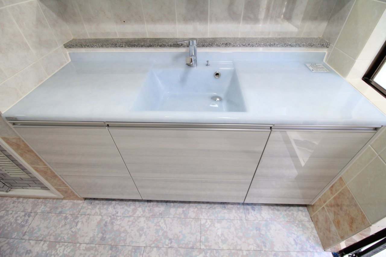 洗面室は、床・窓・洗面化粧台をリフォームしました。
