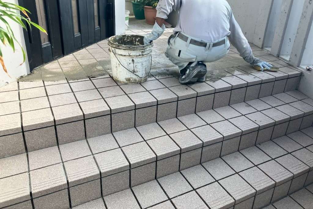 老朽化した玄関ポーチのタイルを貼り替えました。(KYタイル)
