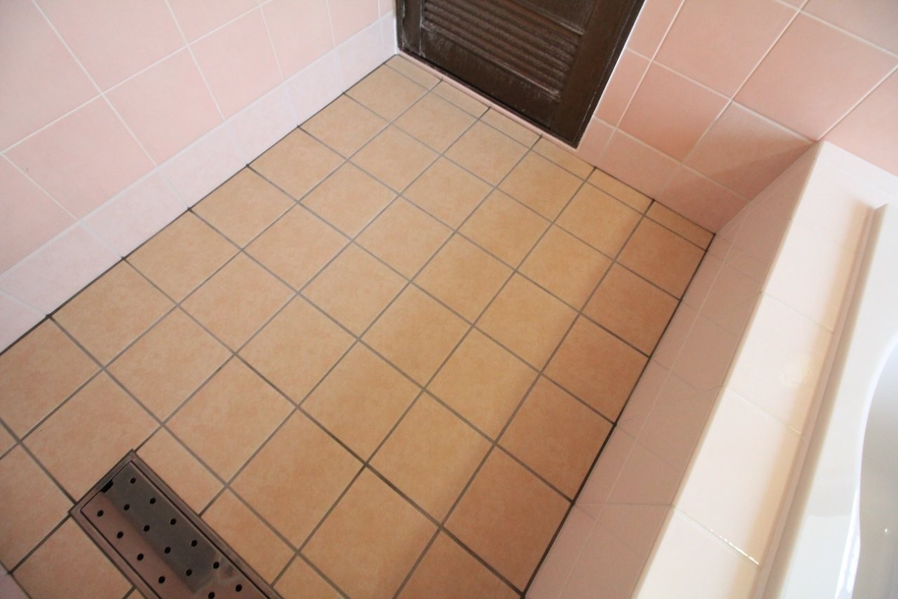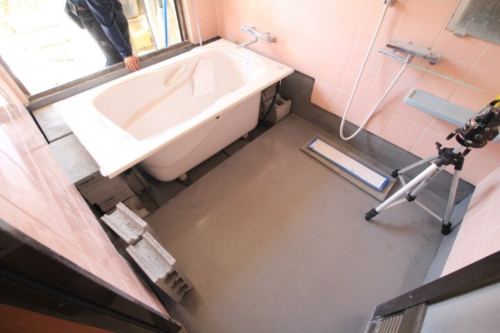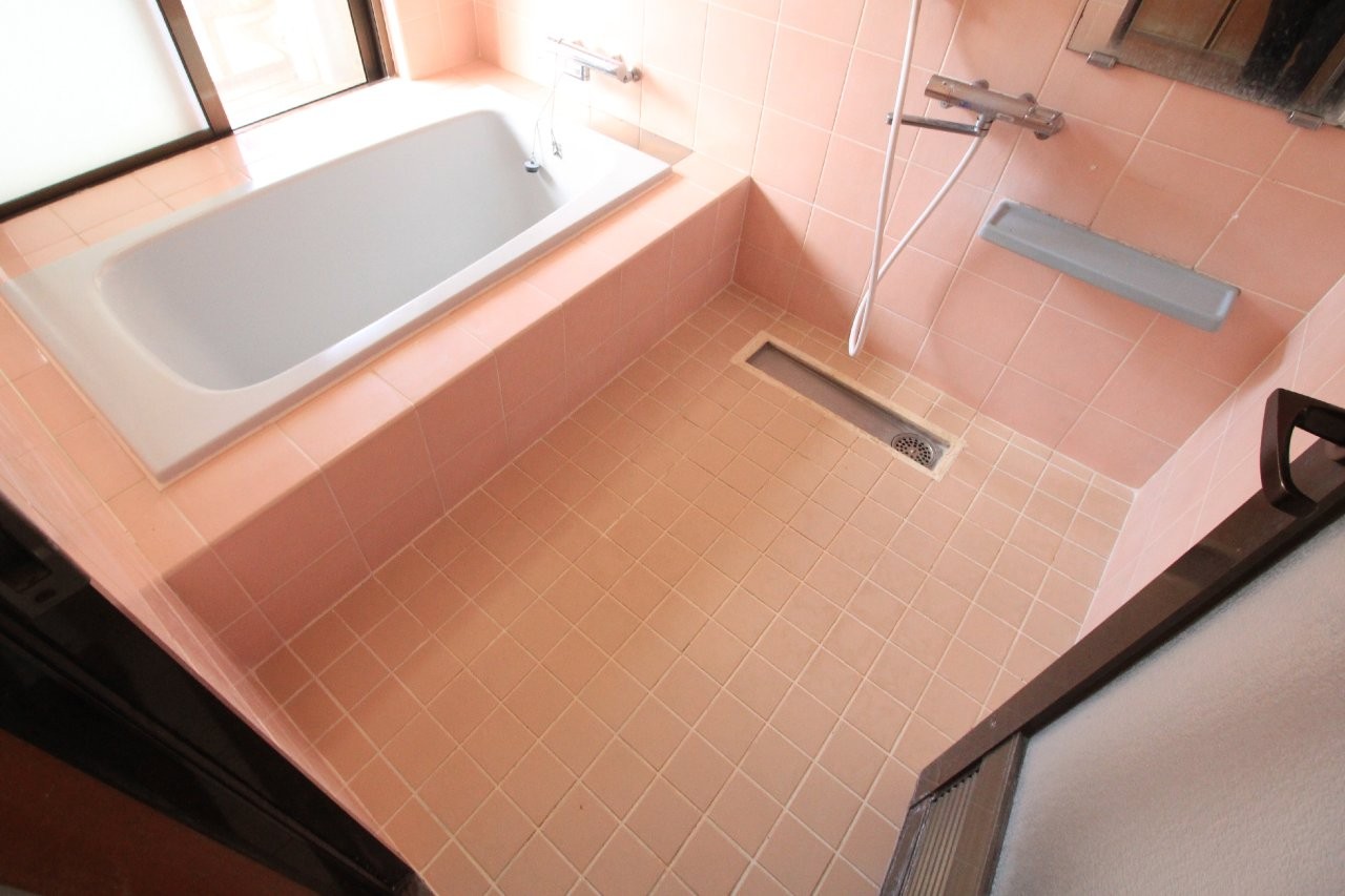 1階への水漏れがあった為、2階浴室の防水リフォームをすることになり、それに合わせて浴槽の取替えと床タイルの貼り替えリフォームも行いました。