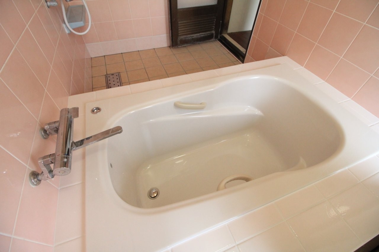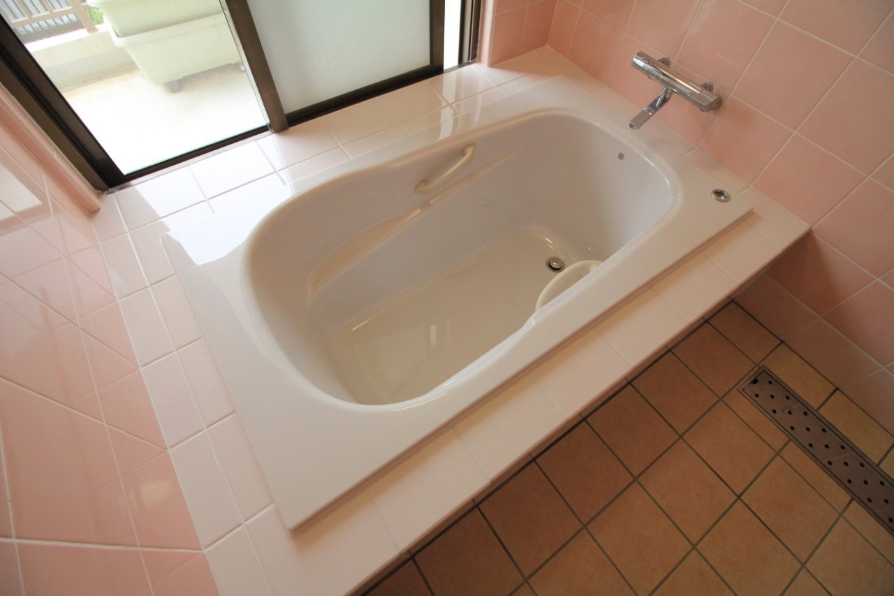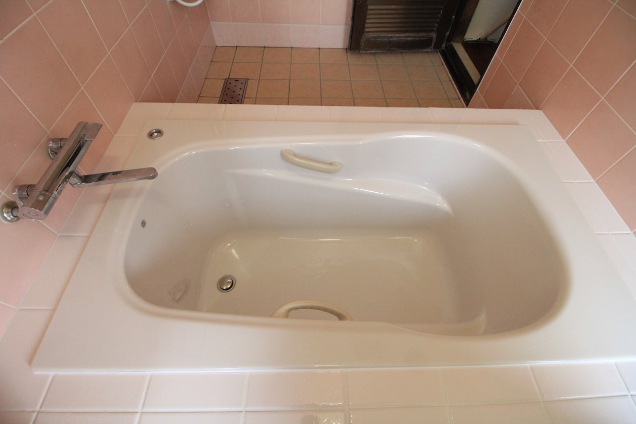 浴槽は、柔らかな肌触りと滑らかで透き通るような光沢が人気の、不飽和ポリエステル系人工大理石のバスタブに取り替えました。(TOTOの ネオマーブバス 1400)