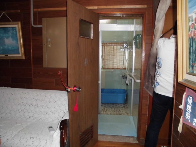 洗面所と浴室の間を仕切っていた引戸や、水栓、手すりも撤去します