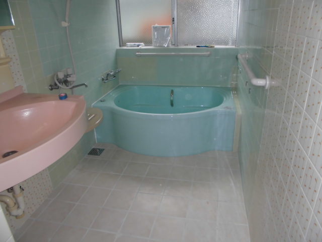 洗面台と浴室の間仕切を撤去し、浴槽や浴室乾燥機を設置。
